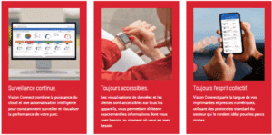 Avec FreeFlow® Vision Connect, toutes ces informations sont regroupées dans une interface unique, accessible à tous. Vous pouvez visualiser en direct :